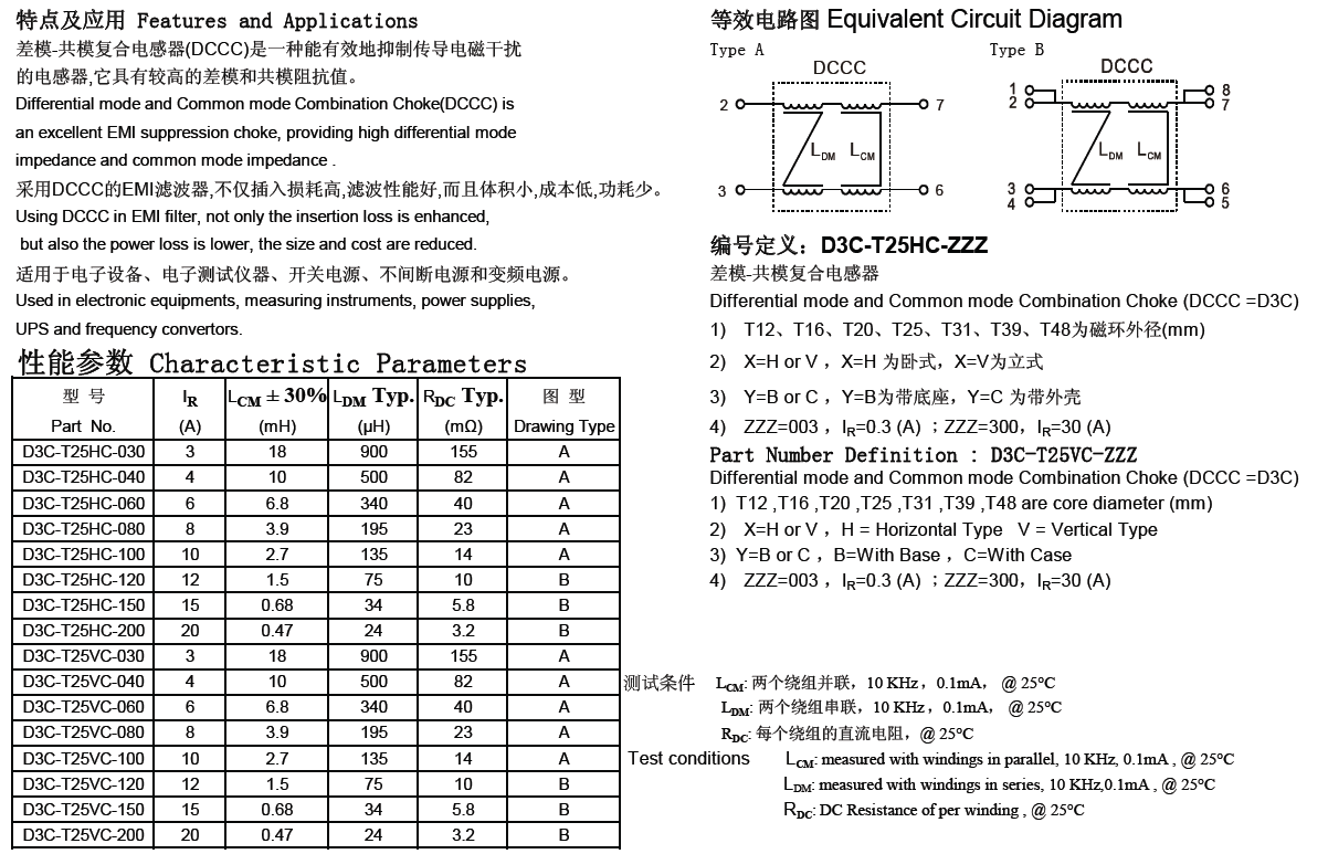 Differential mode and Commonmode Combination Chokes (DCCC)